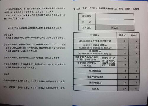 昨日合格発表のあった社労士試験の結果通知が到着しました。 不合格ですので普通郵便での到着です。 自己採点とは択一が1点ずれてますが、没問によるものなので特に問題ありません。 そんなことよりも全体的な点数が大問題です。ひどいもんですね・・・ 択一…