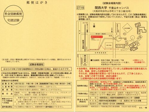 7月に出願していた宅建の試験日が決定しました! 今年も10月と12月に2回実施されるので、他の試験があまりない12月になることを狙って書類申請かつ出願期限ギリギリに郵送していました www.shikaku.fun そして届いた通知は・・・ 10月・・・(T_T) twitterで…