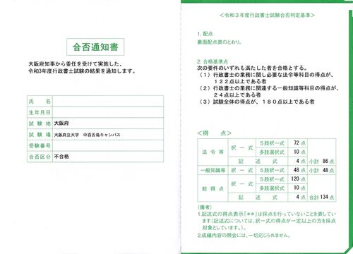 一昨日(2021/1/26)は令和3年度行政書士試験の合格発表日でした。 本日ようやく合否通知書が到着しました。 やはり最近は郵送物の到着が遅い・・・ まあ例のごとく自己採点で不合格ですので、結果通知書が届いてからの記事作成です。 なんならオンラインで…