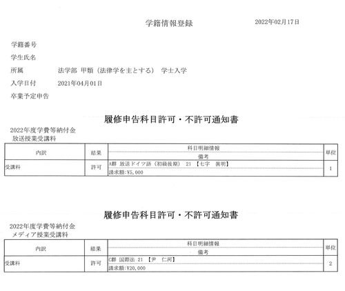 本日2022年度春期メディア授業・放送授業の履修許可通知が郵送されてきました。 画像はまとめましたが、放送授業とメディア授業でわざわざ2通に分けて送ってくるんですね。まとめちゃえばいいのに。 今回のスクーリングですが、メディア授業は高いし科目試験…